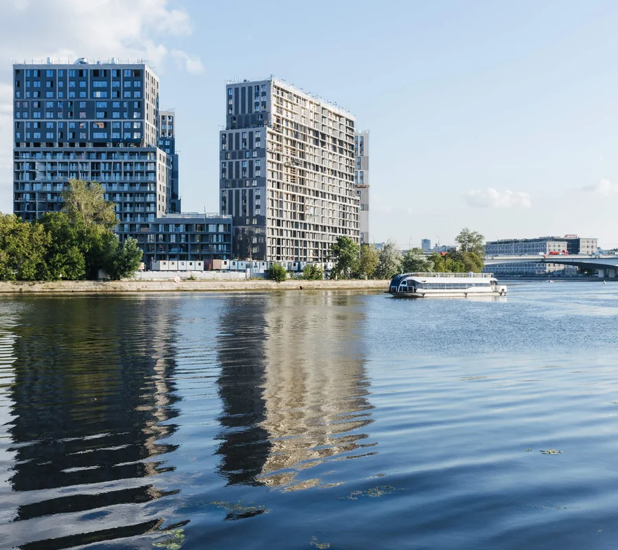 КОРПУСА ВЫРАСТАЮТ НАД МОСКВОЙ-РЕКОЙ, ЦИТИРУЯ УТЁСЫ НОРВЕЖСКИХ ФЬОРДОВ