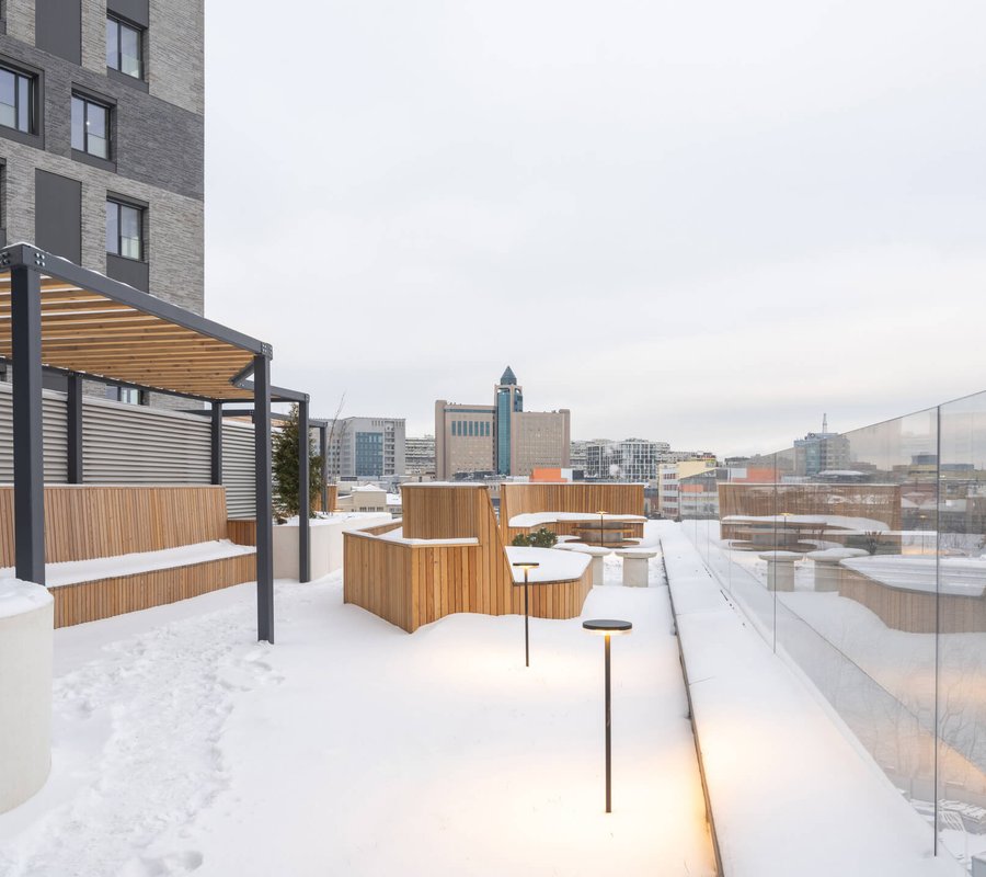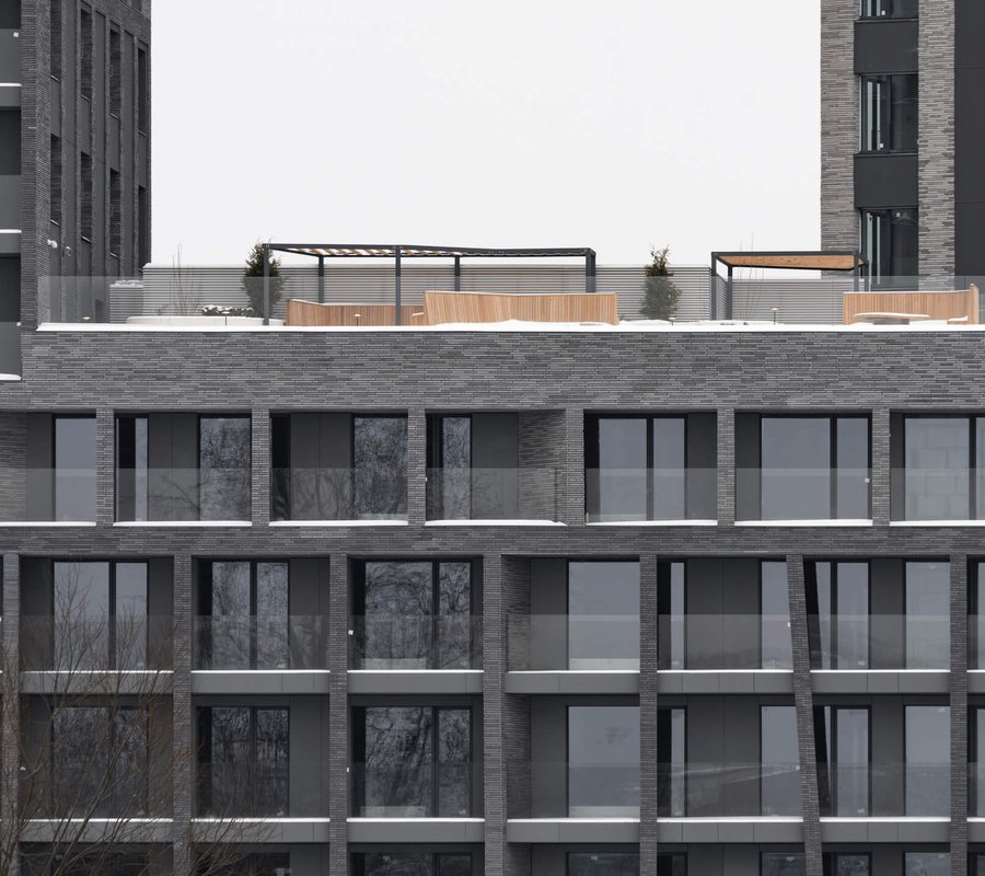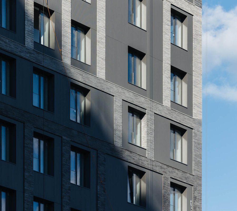 Клинкерные фасады воспроизводят расцветку прибрежных гор: чередующиеся тёмно- и светло-серые этажи создают эффект слоистой скальной породы. Скульптурная нерегулярность приватных лоджий придаёт фасадам тектоническую структуру: словно сама природа составила FØRST из гигантских гранитных блоков. Такому дому легко оберегать всё важное, что есть в вашей жизни.